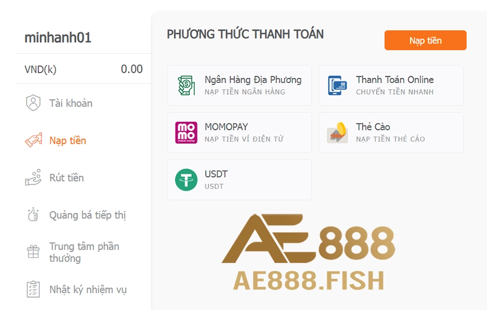 Hướng dẫn nạp tiền AE888 nhanh chóng và an toàn năm 2025